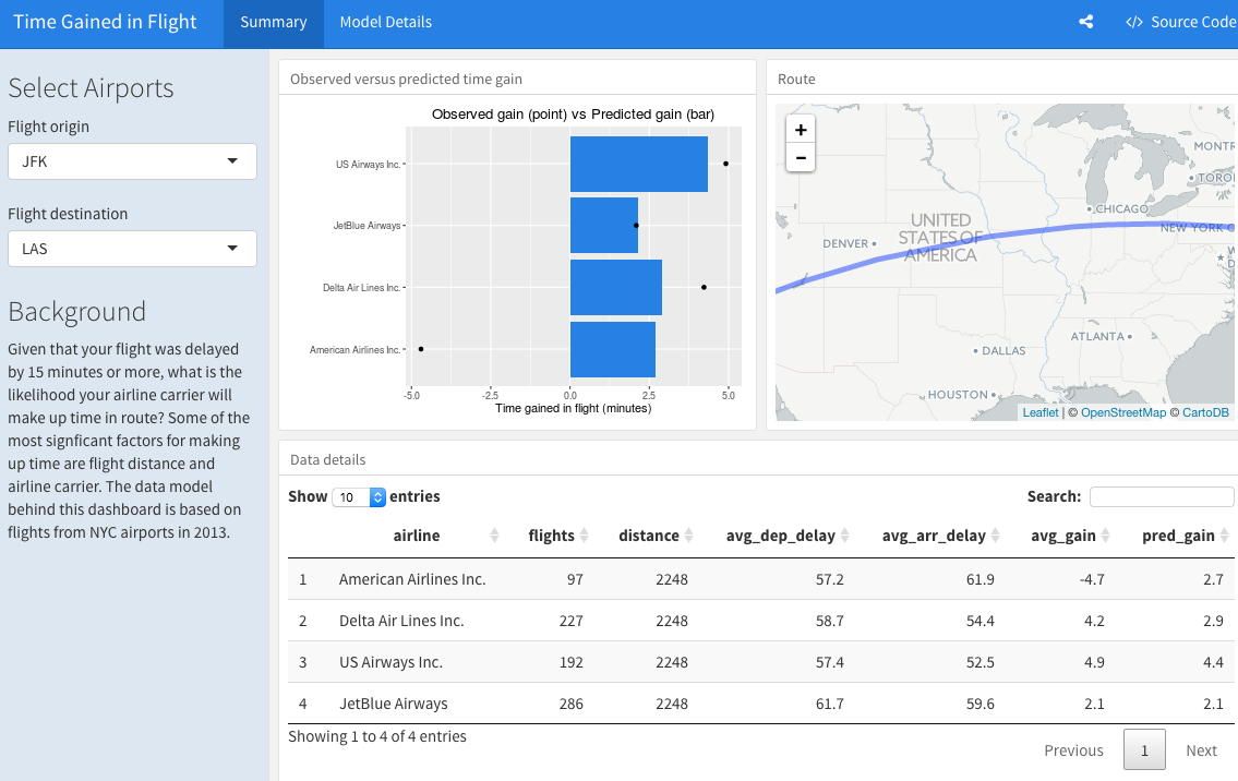 Filter the data to contain only the records to be used in the fitted model. Join carrier descriptions for reference. Create a new variable called gain which represents the amount of time gained (or lost) in flight.