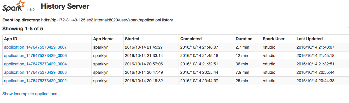 sc <- spark_connect(master = "yarn-client", version="1.6.0", spark_home = '/opt/cloudera/parcels/CDH/lib/spark/')