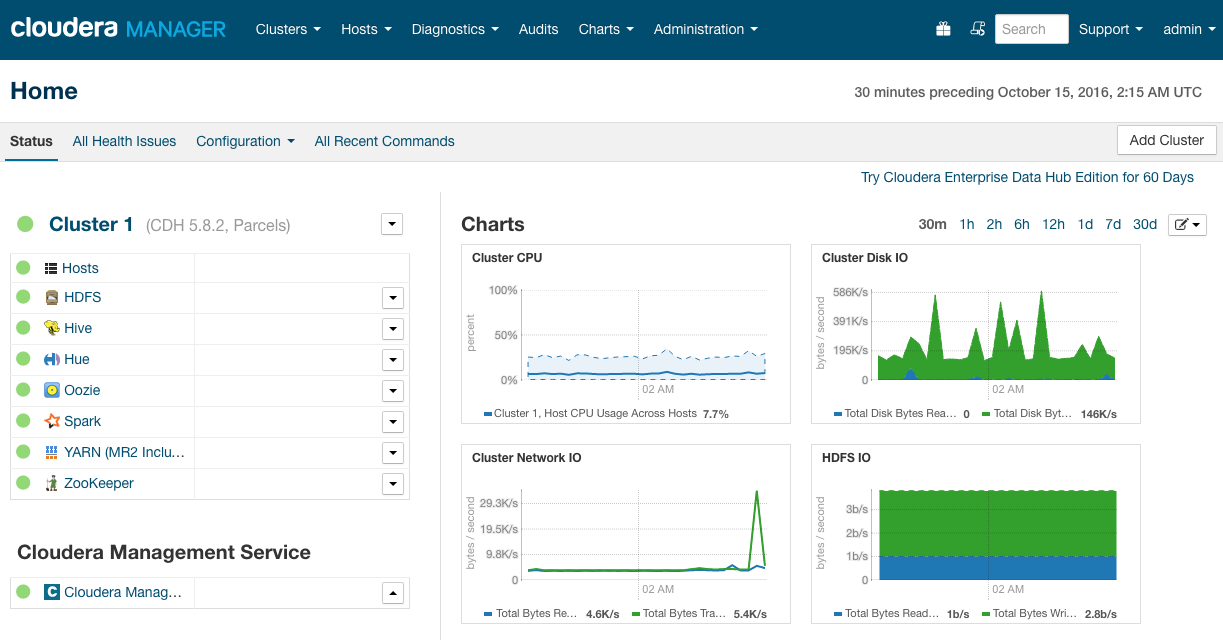 We will start with a Cloudera cluster CDH version 5.8.2 (free version) with an underlaying Ubuntu Linux distribution.
