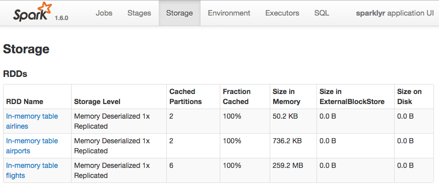 This is what the tables look like loaded in Spark via the History Server Web UI (port 18088)