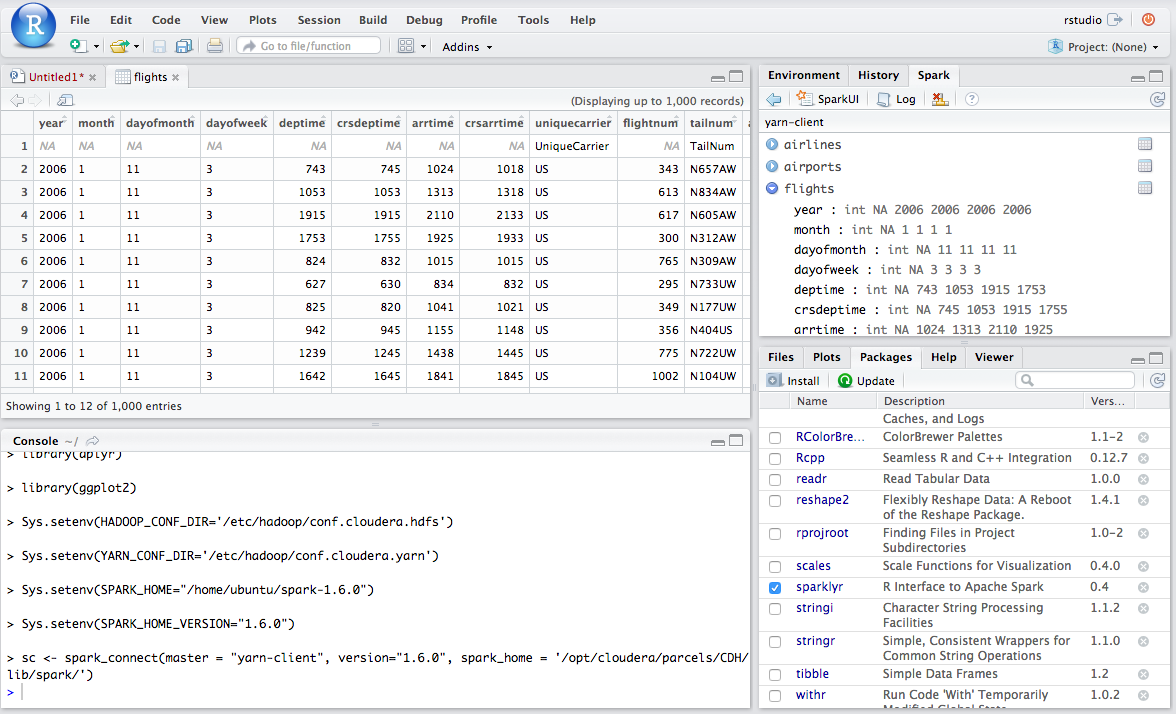 sc <- spark_connect(master = "yarn-client", version="1.6.0", spark_home = '/opt/cloudera/parcels/CDH/lib/spark/')