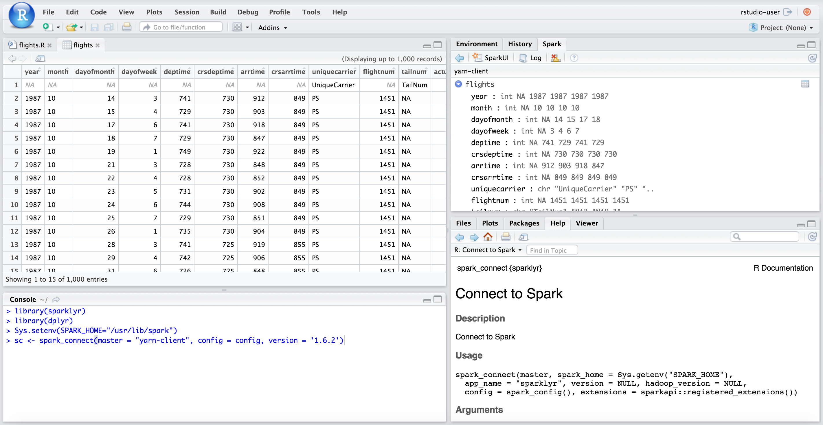 Database: spark connection master=yarn-client app=sparklyr local=FALSE