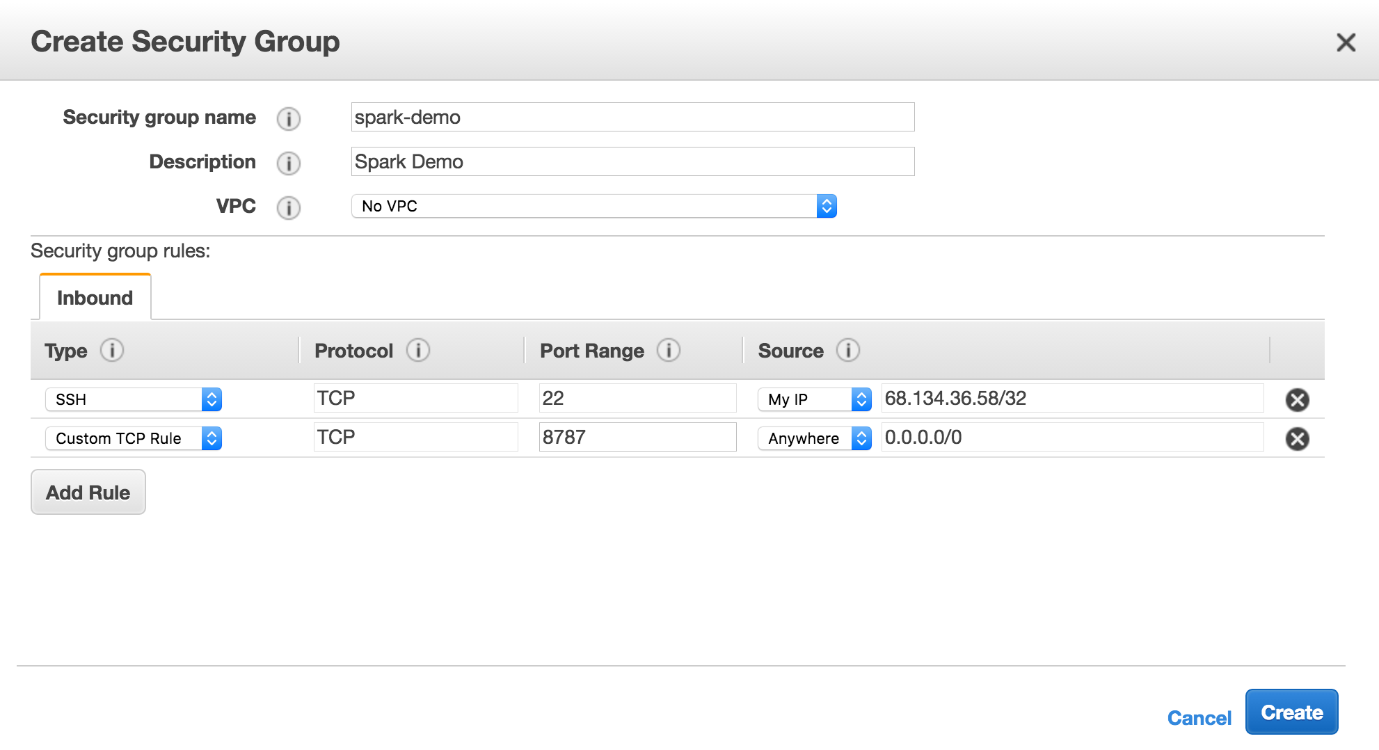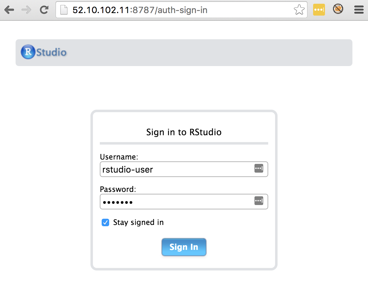 - A security group that gives you access to port 22 on your IP and port 8787 from anywhere