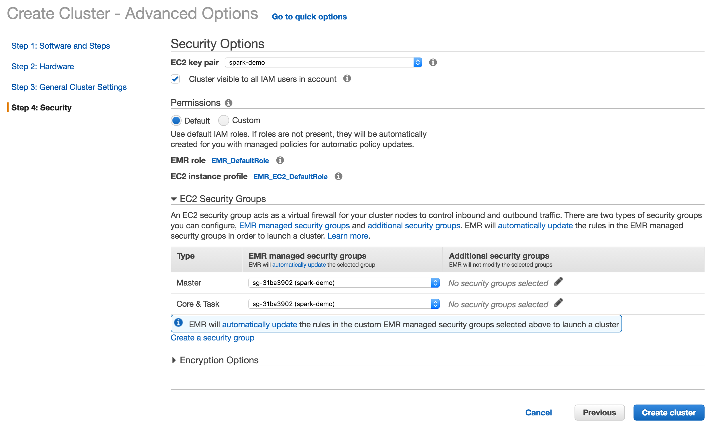 Before beginning the EMR wizard setup, make sure you create the following in AWS: